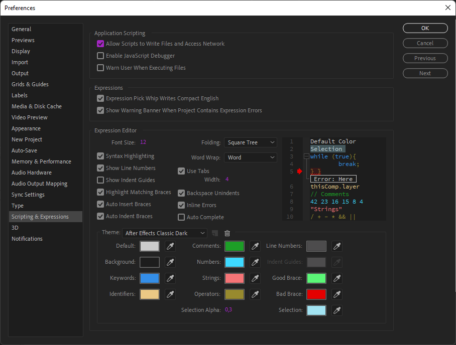 If you see this window, click on Open preferences. This opens After Effects scripting preferences.