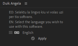 There are many available panels. The main Duik panel, containing the complete tool set is the file calledDuik Angela.jsx; if you install only this one you’ll have all the features in a single panel. Other files are individual panel providing subsets of the Duik tool set, to give you more options to customize your After Effects workspace. You can install as many of them as you need.