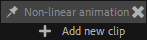 To create new clips, you can either duplicate an existing clip (to work from the existing animation) or use the Add new clip button in the NLA options in the Duik Animation panel. This button will create a new clip for the NLA corresponding to the active composition (it doesn’t matter which one it is as long as it belongs the the NLA, i.e. its name starts with “NLA.”).