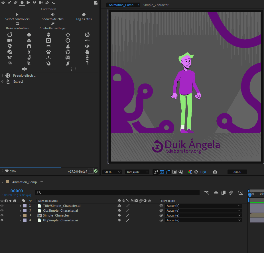 Extracts all controllers from the selected precomposition, to allow the animator to manipulate the rig directly from the containing composition.