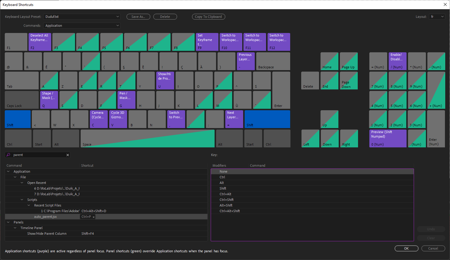 To assign [Ctrl] + [P] to the script (for example), first click on the P key on the keyboard image, to check what’s already assigned to it and make sure you want to replace the default.