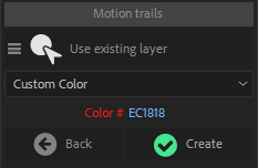 In the additional panel, you can choose to create a new layer when you create new motion trails, or to add them all on the existing layer if any. You can also set the color of new motion trails.