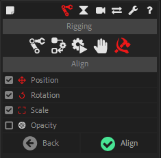 In the additional panel you can choose to align the layers in position, rotation, scale or even opacity.